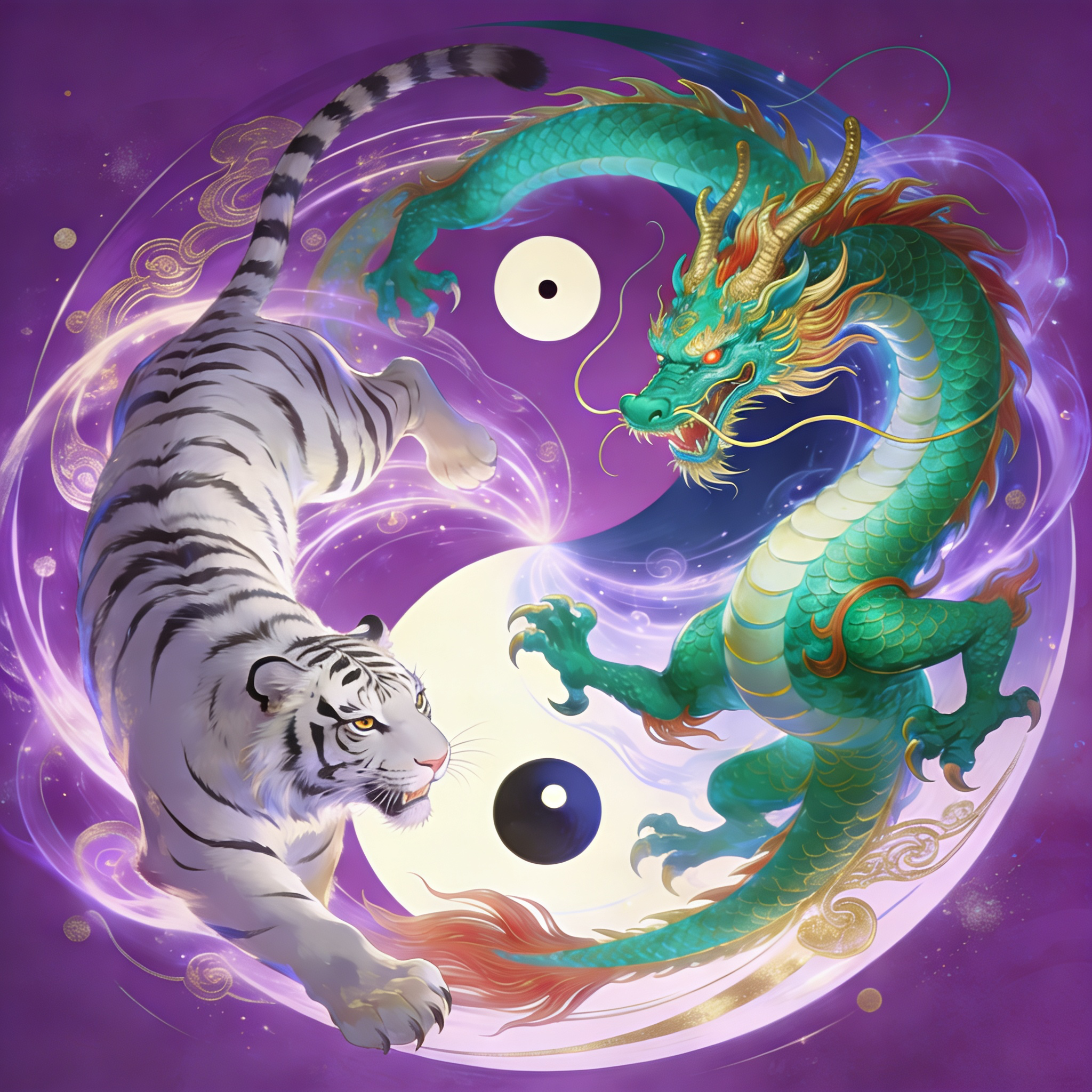 Dans la tradition taoïste, le couple Tigre et Dragon (龙虎, lóng-hǔ) constitue l’une des métaphores les plus profondes de l’alchimie interne (Neidan), du Qigong et de la psychologie spirituelle. Voici un résumé détaillé de leur signification et de leurs interactions.